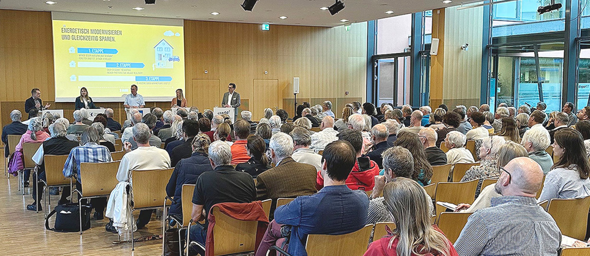 Im Bildungs- und Veranstaltungsbereich organisiert die EGZ eigene Angebote oder übernimmt Auftragsmandate, wie beispielsweise seit Anfang 2025 das Geschäftsleitungsmandat für das Programm «starte!». Das beliebte Format, das mit Infoveranstaltungen in Gemeinden des Kantons Zürich gastiert, richtet sich an EigentümerInnen von Wohnbauten mit Modernisierungsbedarf. Das Programm wurde 2013 von der Baudirektion des Kantons Zürich, gemeinsam mit den EKZ und der Zürcher Kantonalbank entwickelt. Seither haben über 100 Veranstaltungen stattgefunden (www.starte-zh.ch).