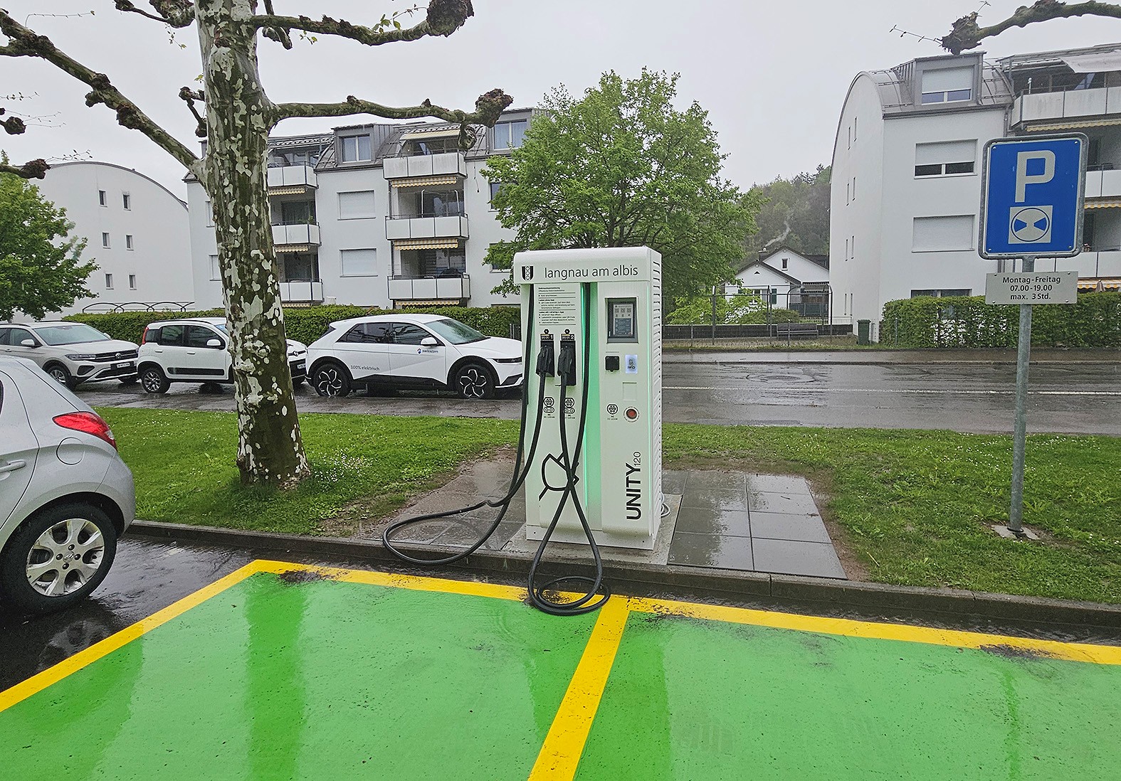 Für die Gemeinde Langnau am Albis durfte die EGZ die erste öffentlich nutzbare Schnell-Ladestation realisieren. Nach der Konzeptphase wurde aufgrund eines Leistungsverzeichnisses eine Submission durchgeführt. Die Realisierung beinhaltete neben Tiefbauarbeiten auch die elektrischen Anschlüsse für die Anbindung eines Foodtrucks und eines Förderbands für die Altpapier-Sammlung der Gemeinde. Mit dem Abrechnungssystems «eCarUp» wird ein unkomplizierter, sicherer und günstiger Zahlungsprozess sichergestellt. Kurz vor Weihnachten 2024 konnte die Schnell-Ladestation in Betrieb genommen werden. Die Ladestation mit 2 DC-Ladepunkten (max. 120 kW) und 1 AC-Ladepunkt (max. 22 kW) wird seither rege genutzt.